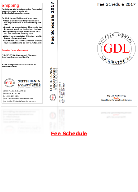 Work With a Winning Dental Laboratory That Really Cares About Your Practice Success Get a Current Fee Schedule and Check Out All Our Products Copyright© 2017  Griffin Dental Laboratories, LLC.  The Official Website.  All Rights Reserved GRIFFIN DENTAL LABORATORIES
